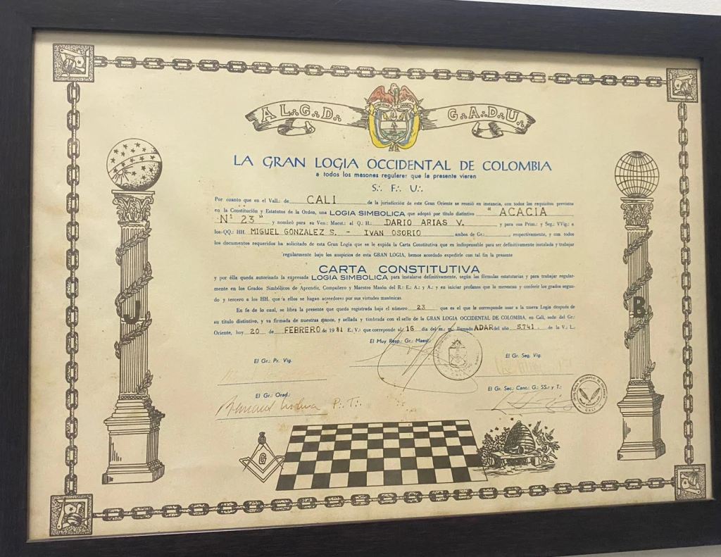 Así nació la nueva rama de la Masonería Occidental de Colombia, ya bajo el Mall.·. del Gr.·. Maest.·. Carlos Vargas Murcia y aquellos siete MM.·.MM.·. Darío Arias Valencia, Humberto Serrano Villareal, José Elías Cantillo Perdomo, Miguel González Sierra, Efraín Torres, José Schneider, José Iván Osorio Valencia, que iniciaron una senda de inmensas dificultades, grandes sacrificios y colosales satisfacciones, otorgándosele Carta Constitutivita el día 20 de febrero de 1981.